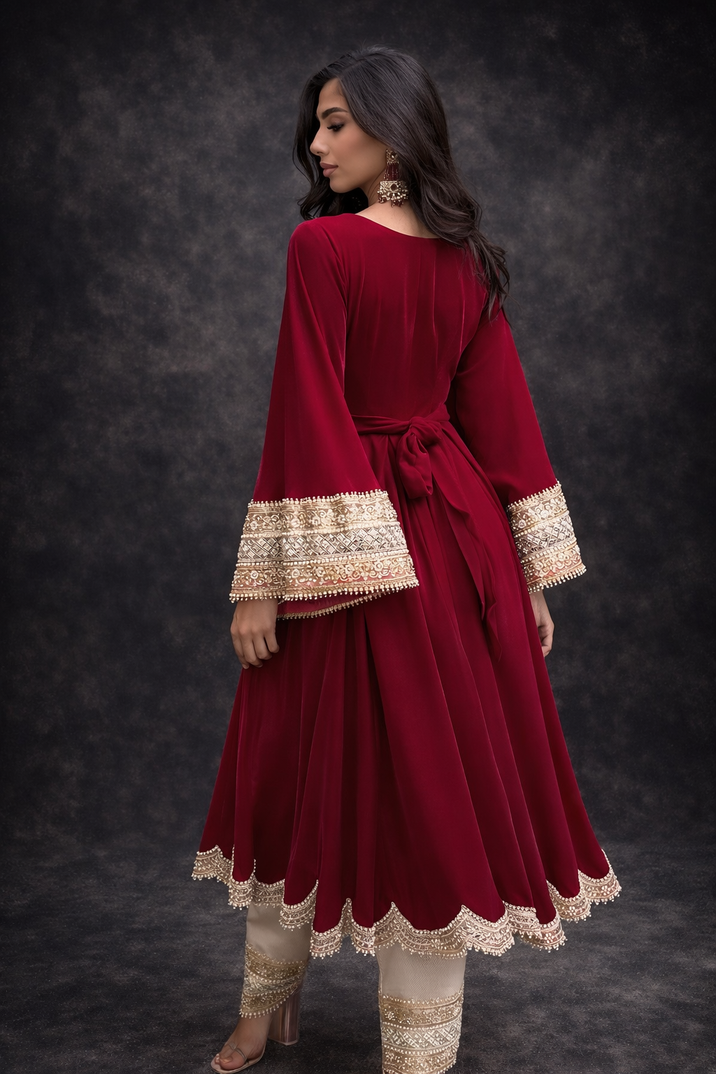 Shabnoor Royal Purple – Afghan Crepe Dress with Organza Dupatta