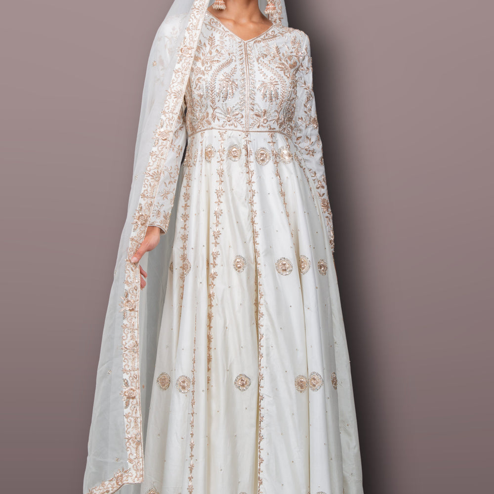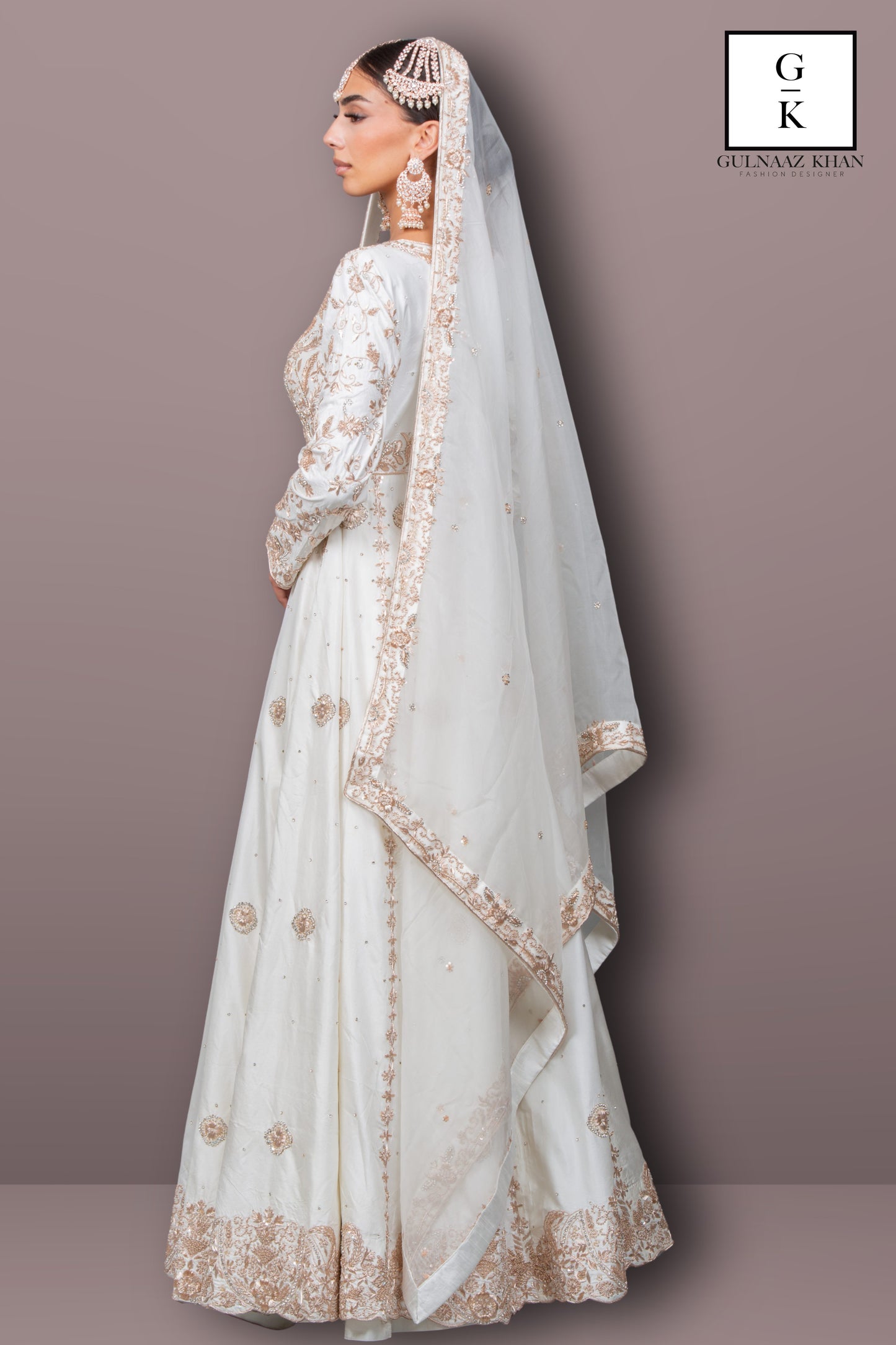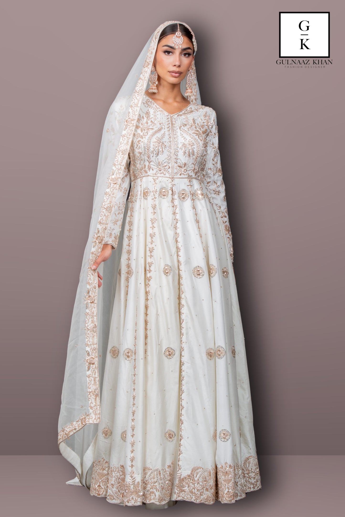 Fareeha - Ivory White Bridal Gown with Light Gold Embroidery & Sequins