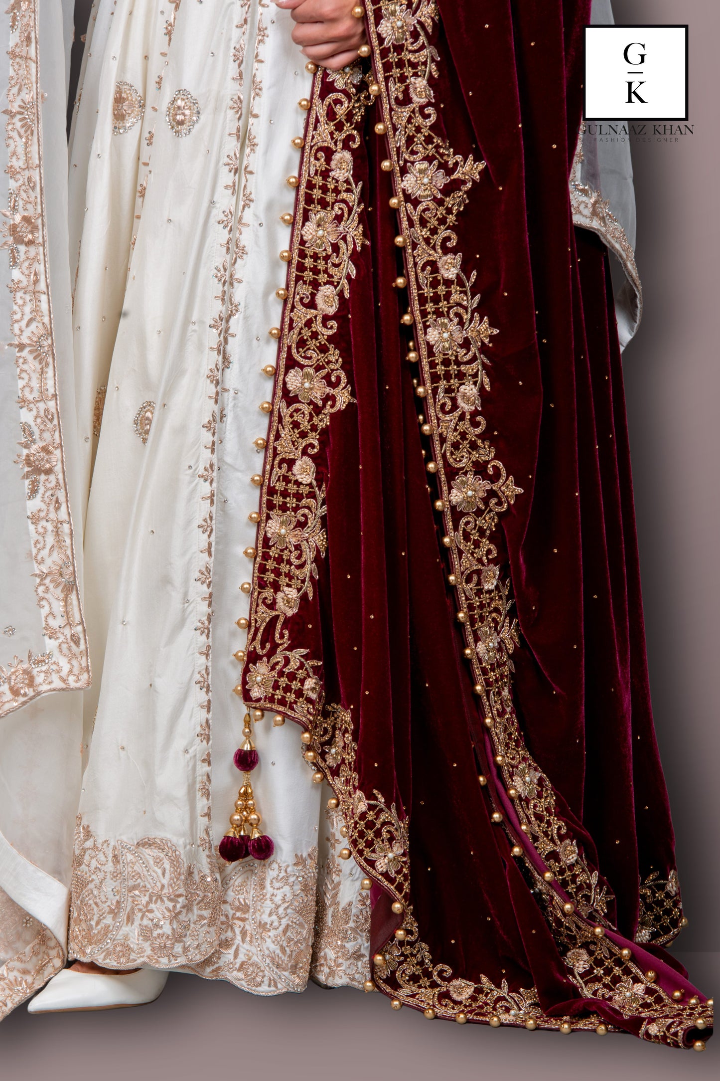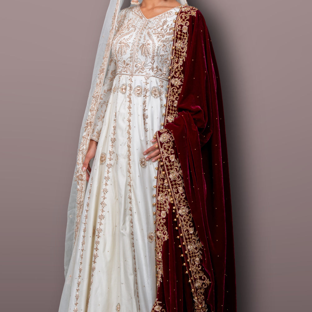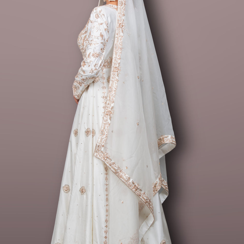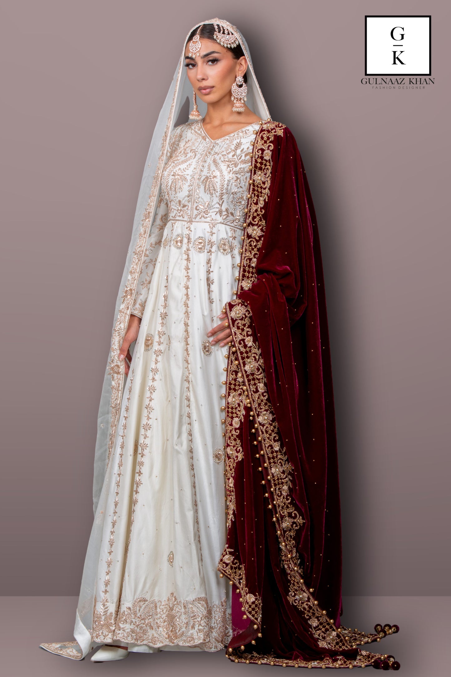 Fareeha - Ivory White Bridal Gown with Light Gold Embroidery & Sequins