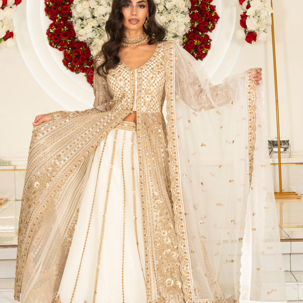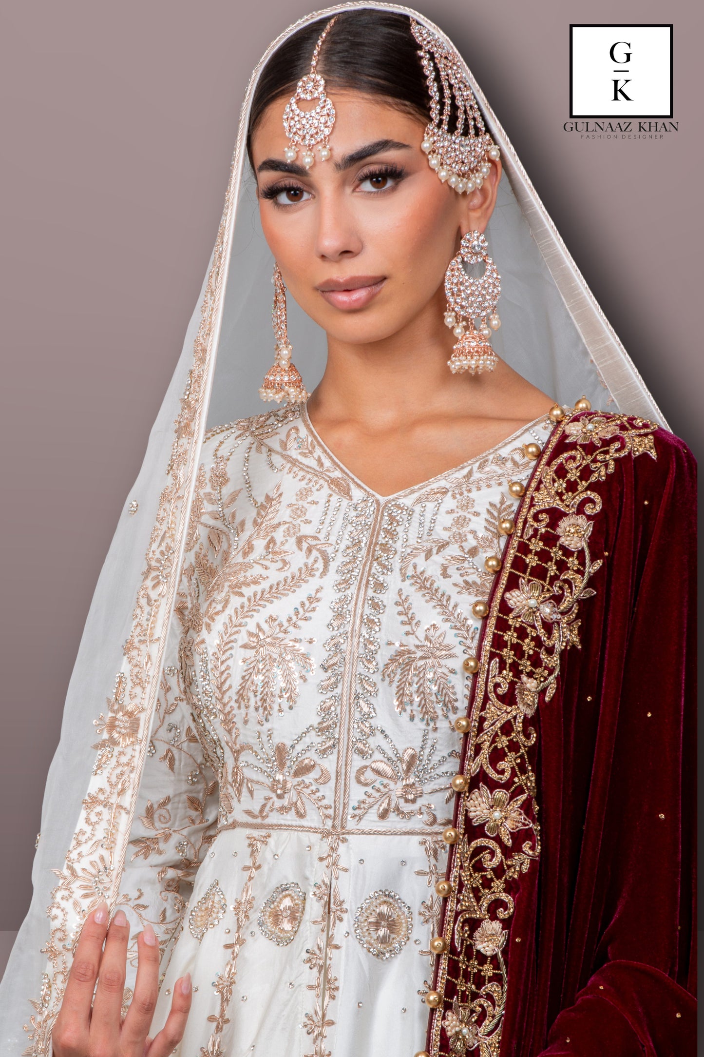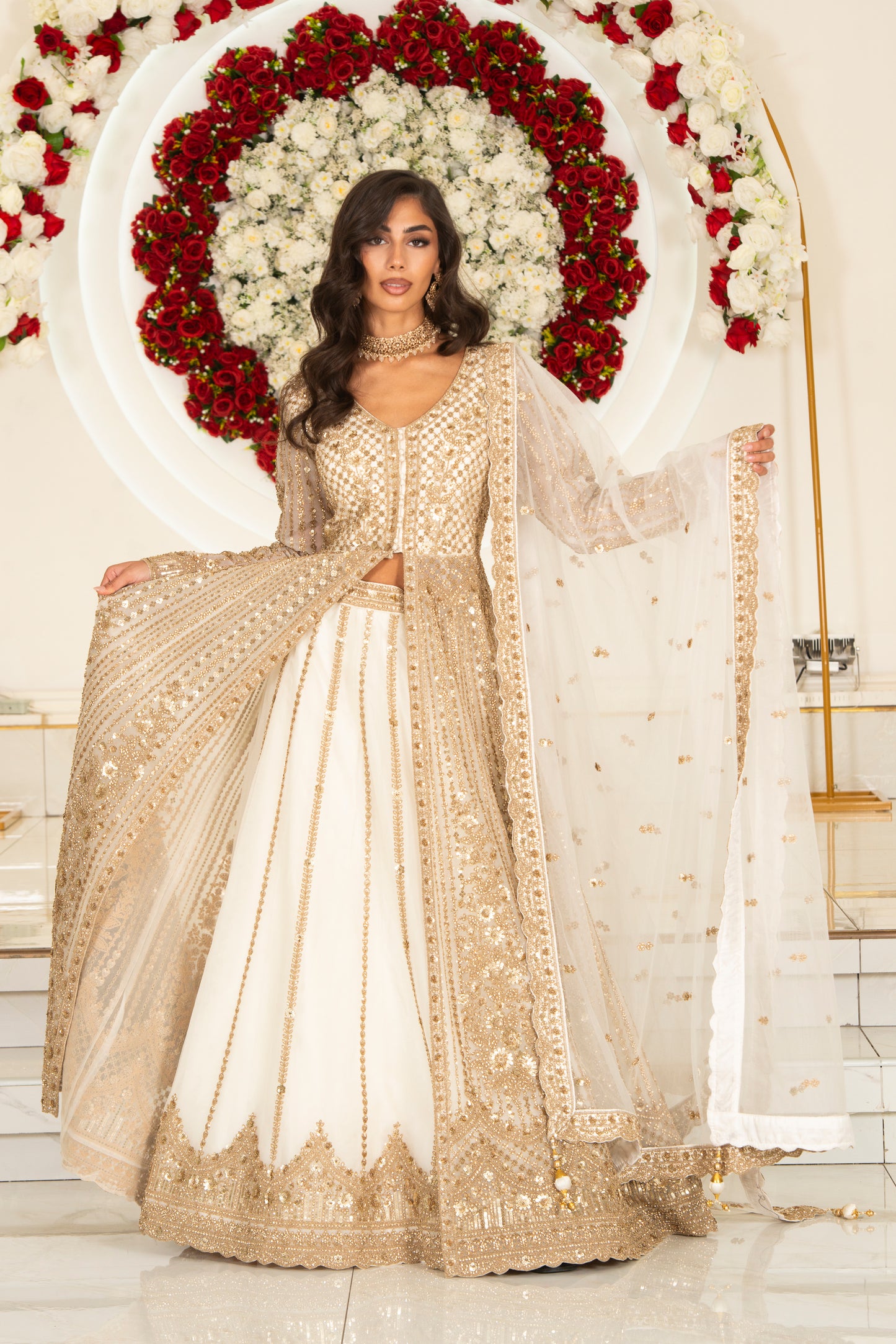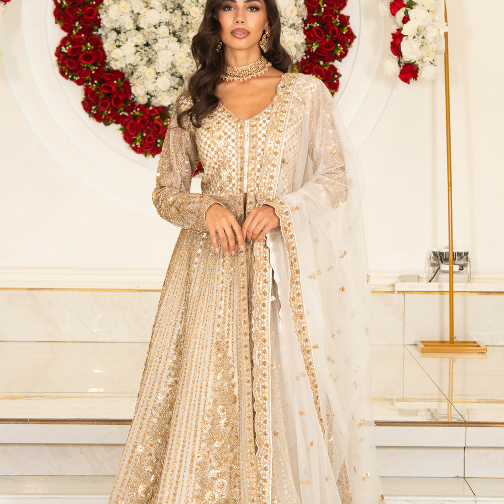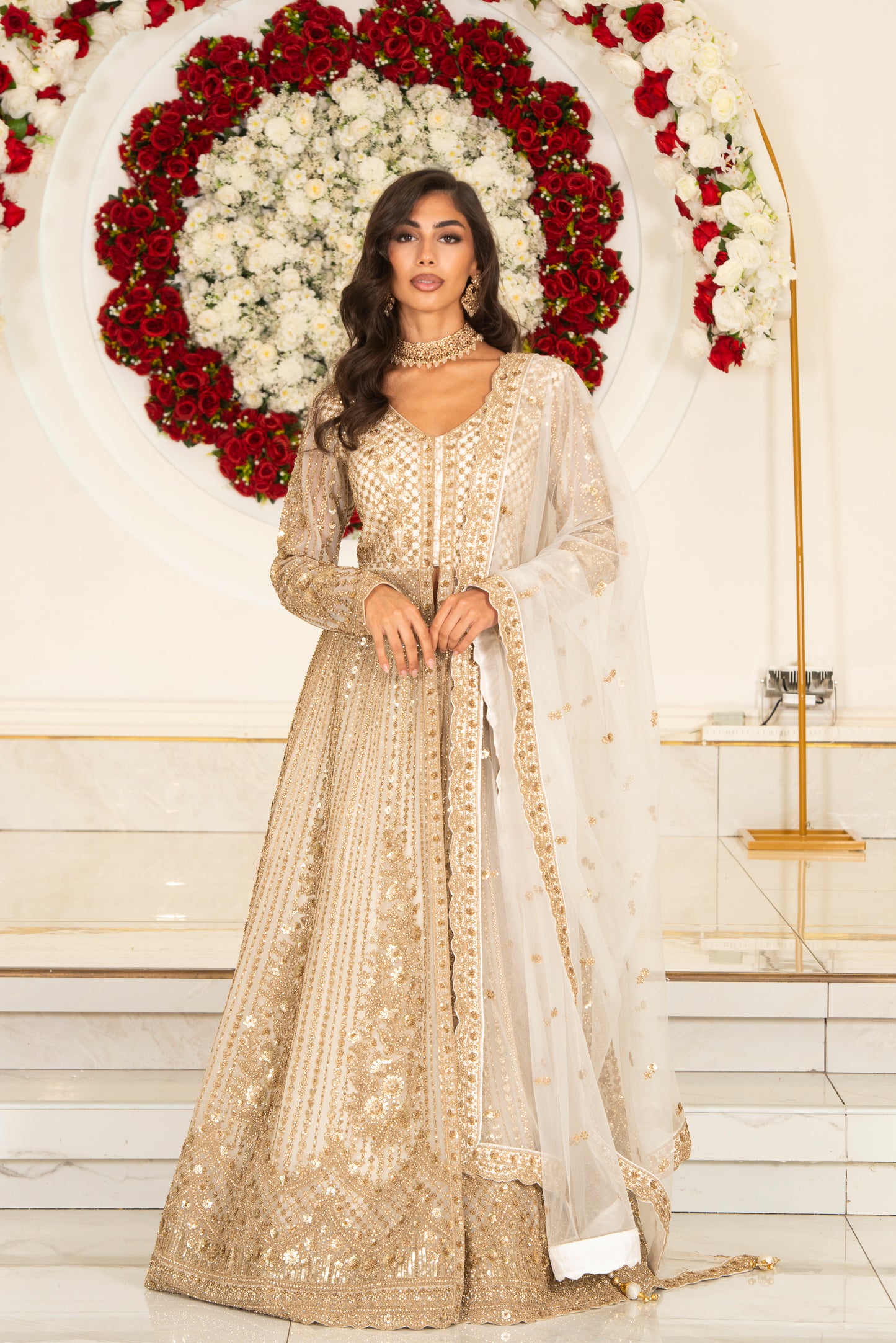 Fareeha - Ivory White Bridal Gown with Light Gold Embroidery & Sequins