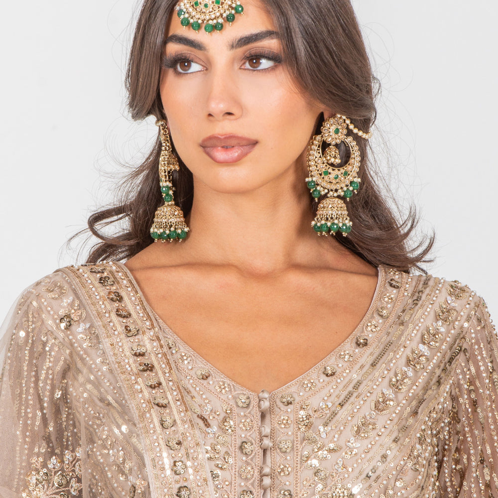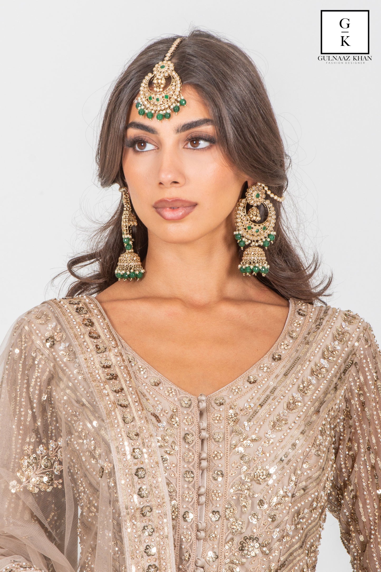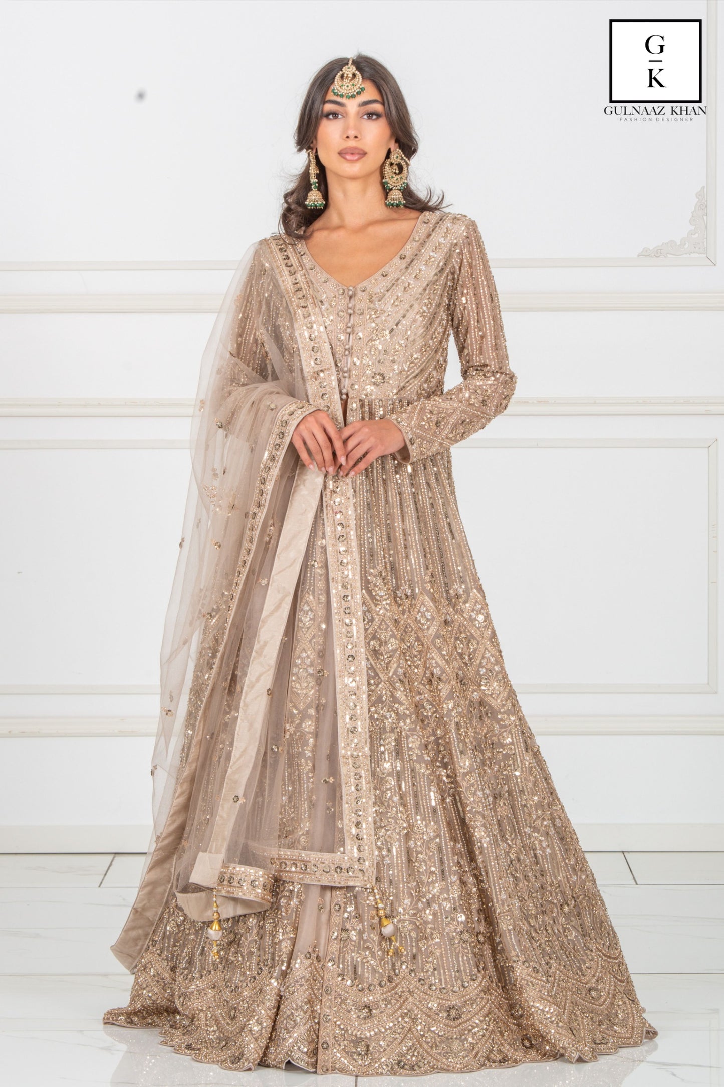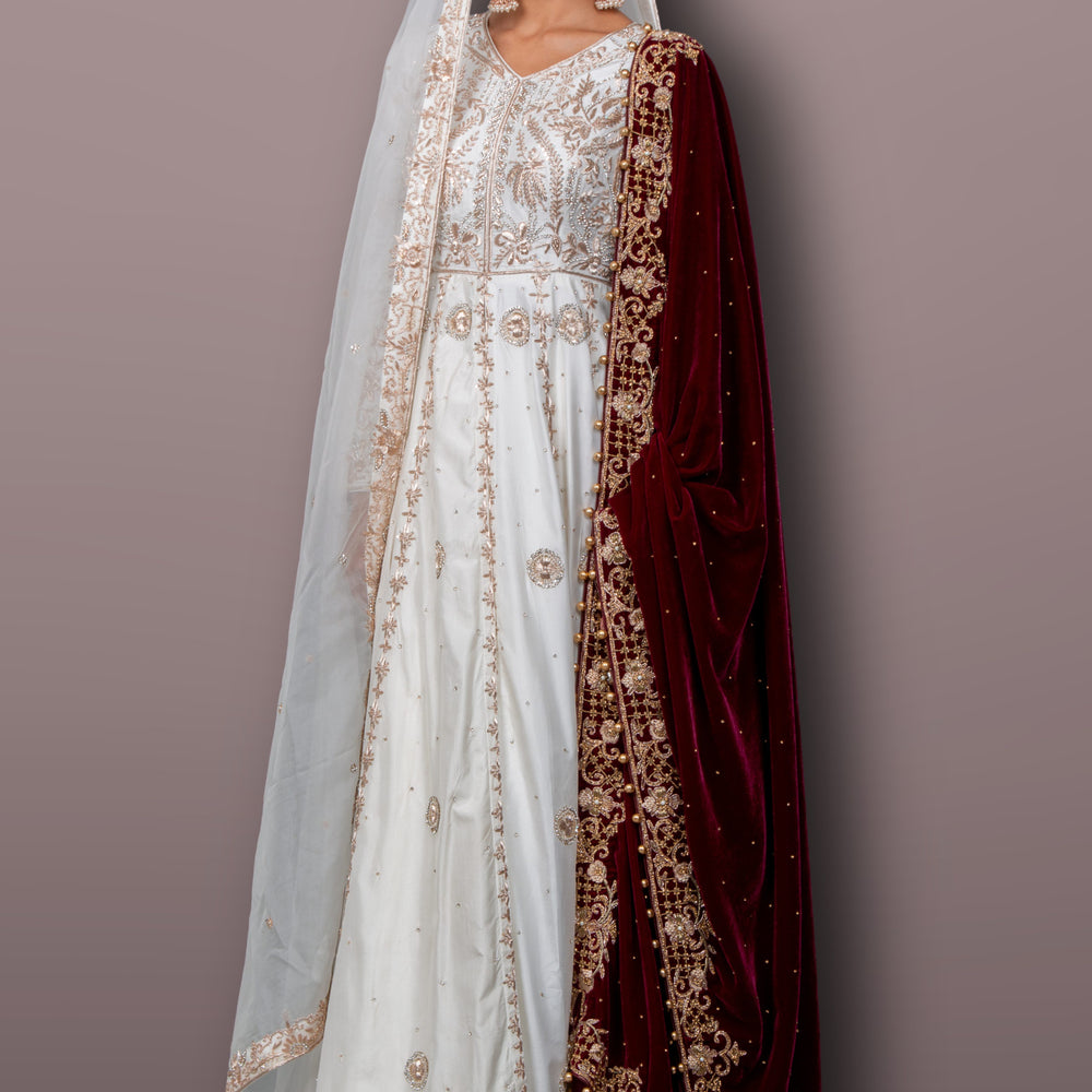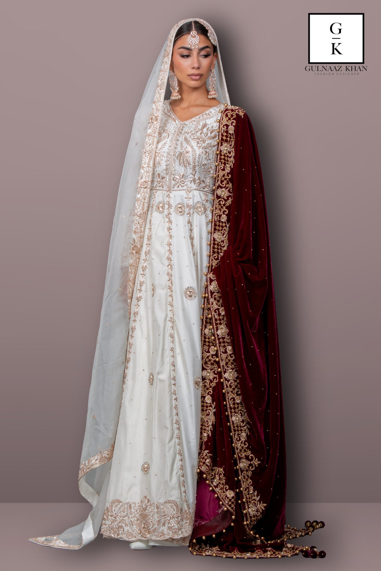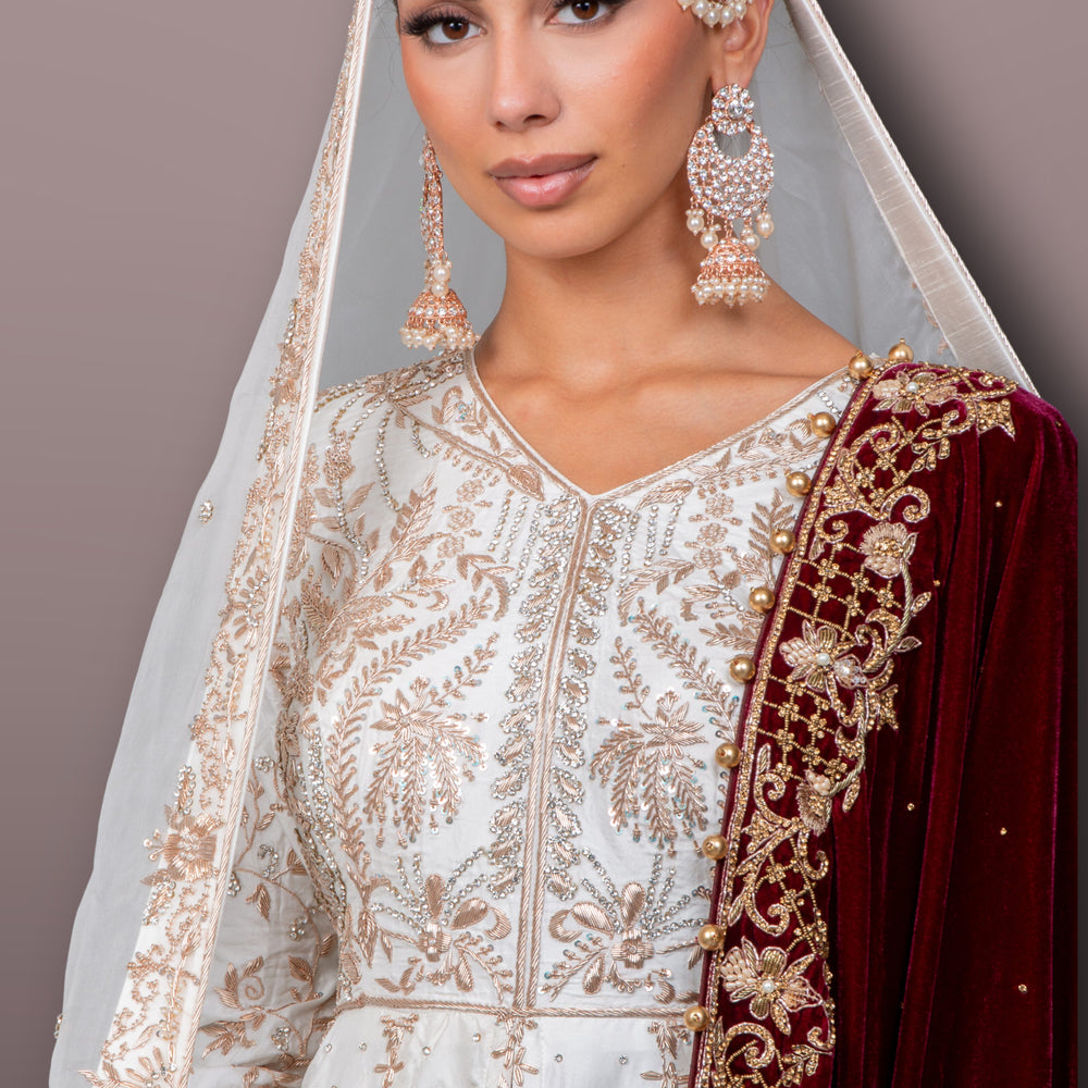 Fareeha - Ivory White Bridal Gown with Light Gold Embroidery & Sequins