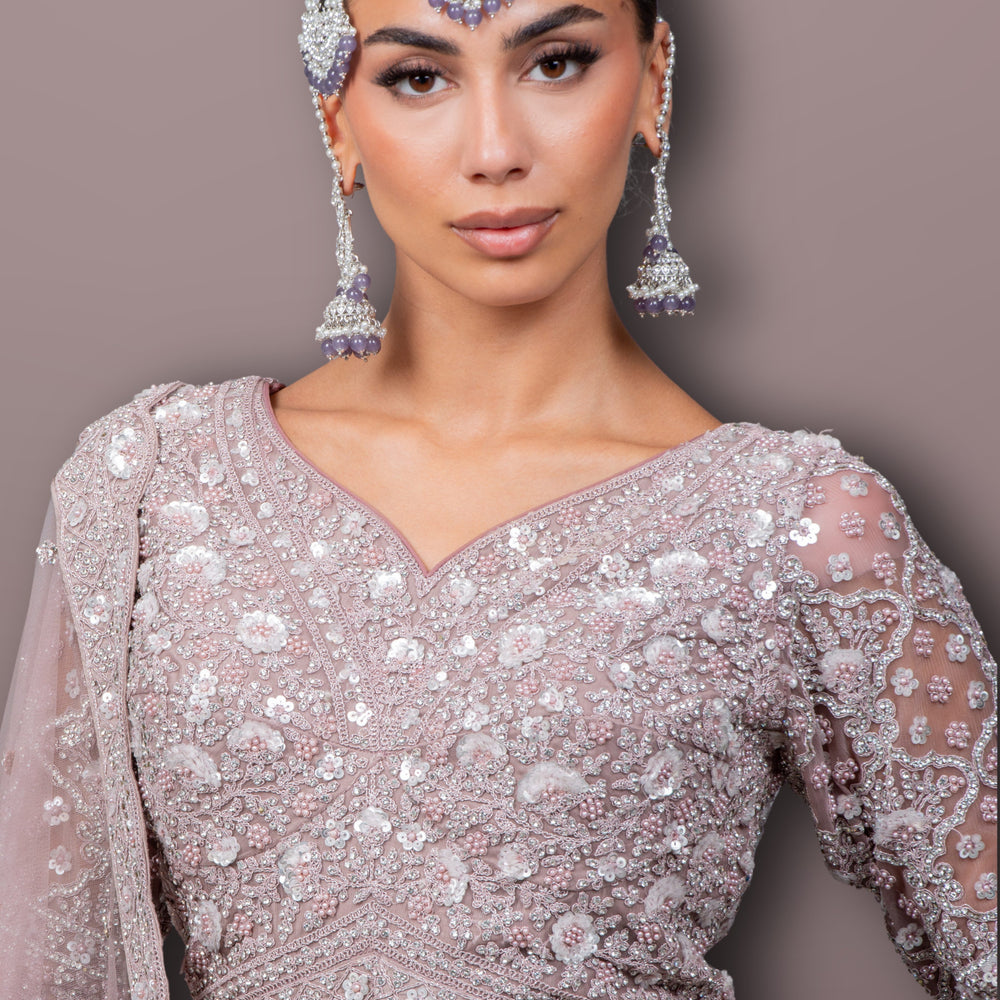 Khizra – Designer Bridal Lehenga in Net with Hand Embroidery