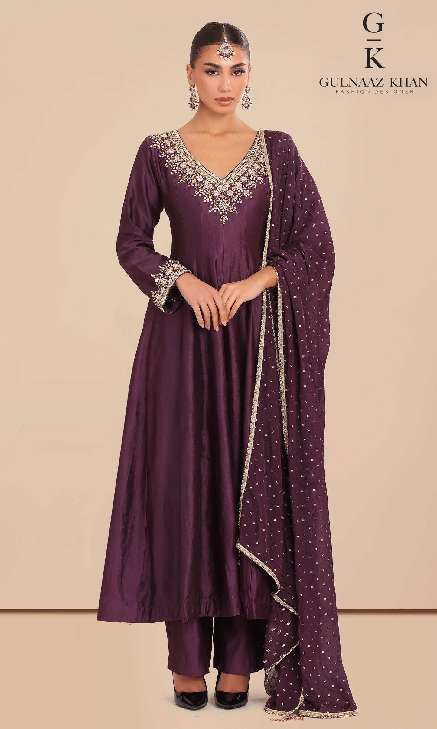 Talia – Deep Purple Pure Silk Embroidered Outfit