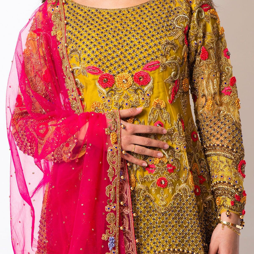 Jinani Beautiful Mehendi peplum with dabka, pearls and sparkling stone embellishments
