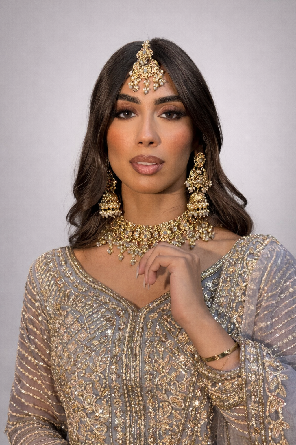 This exquisite mauve color lehenga choli set exudes elegance and sophistication, perfect for special occasions and weddings. The ensemble features a long-sleeved blouse adorned with intricate gold embroidery, sequins, diamond and beadwork, creating a dazzling effect. Crafted from luxurious net fabric, the lehenga showcases delicate gold embroidery and a full flared skirt. The hemline is beautifully decorated with an ornate gold border, adding a touch of opulence. Completing the look is a matching net dupatta with a heavily embroidered border and scattered gold motifs, draping elegantly over the shoulder. This mauve lehenga set combines traditional craftsmanship with contemporary style, making it perfect for any event.