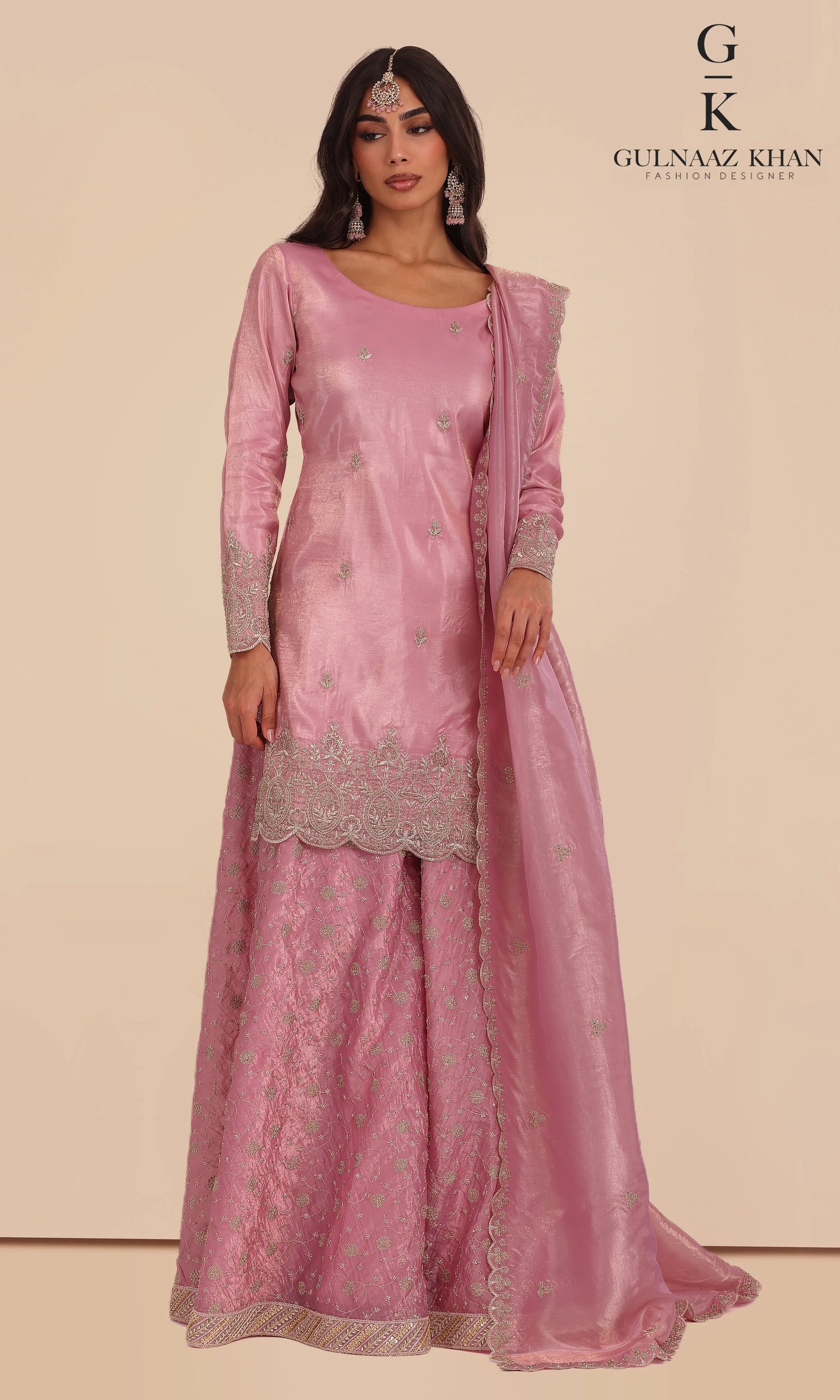 Mira – Designer Mauve Tissue Silk Sharara Set