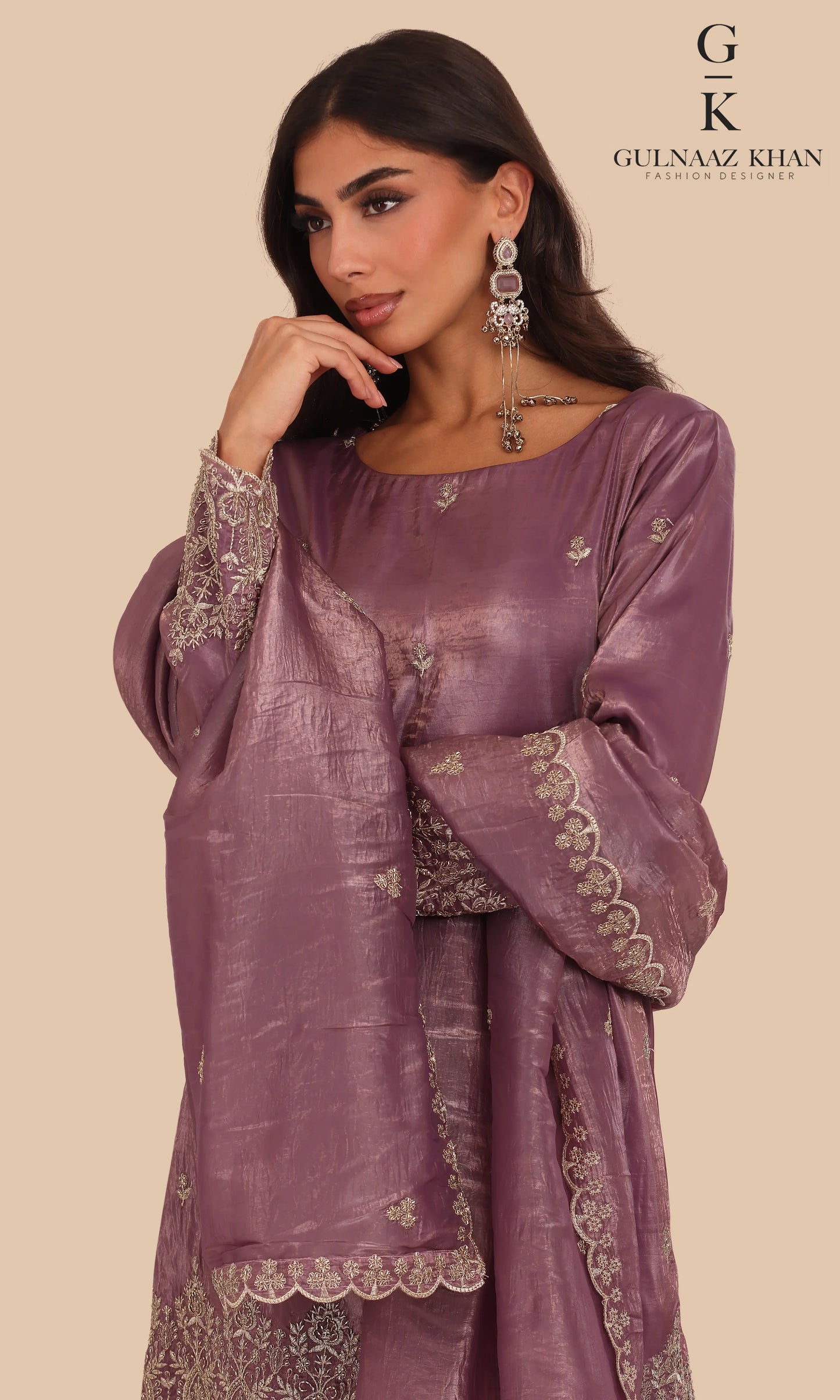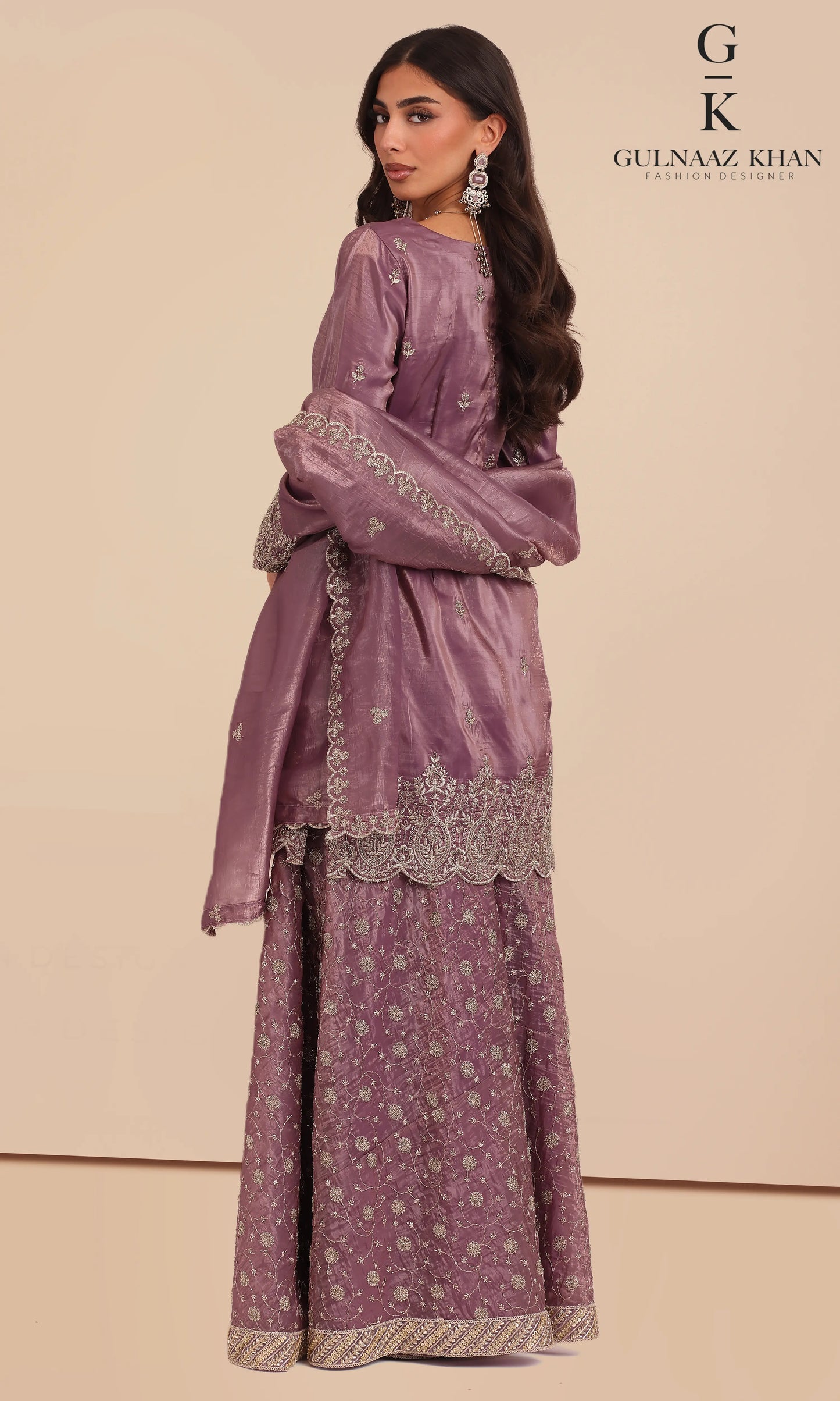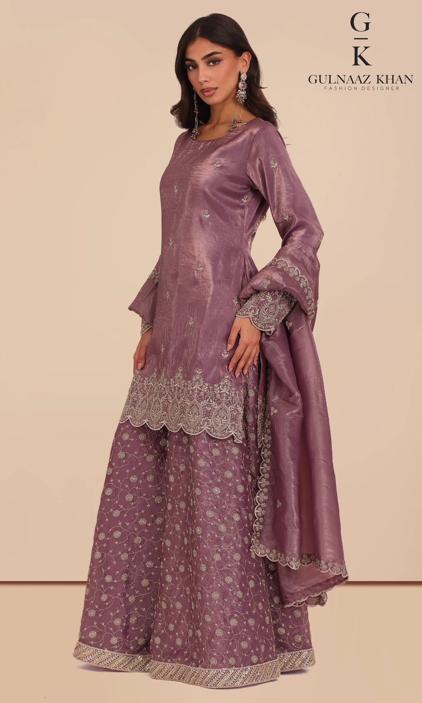 Mira – Designer Mauve Tissue Silk Sharara Set