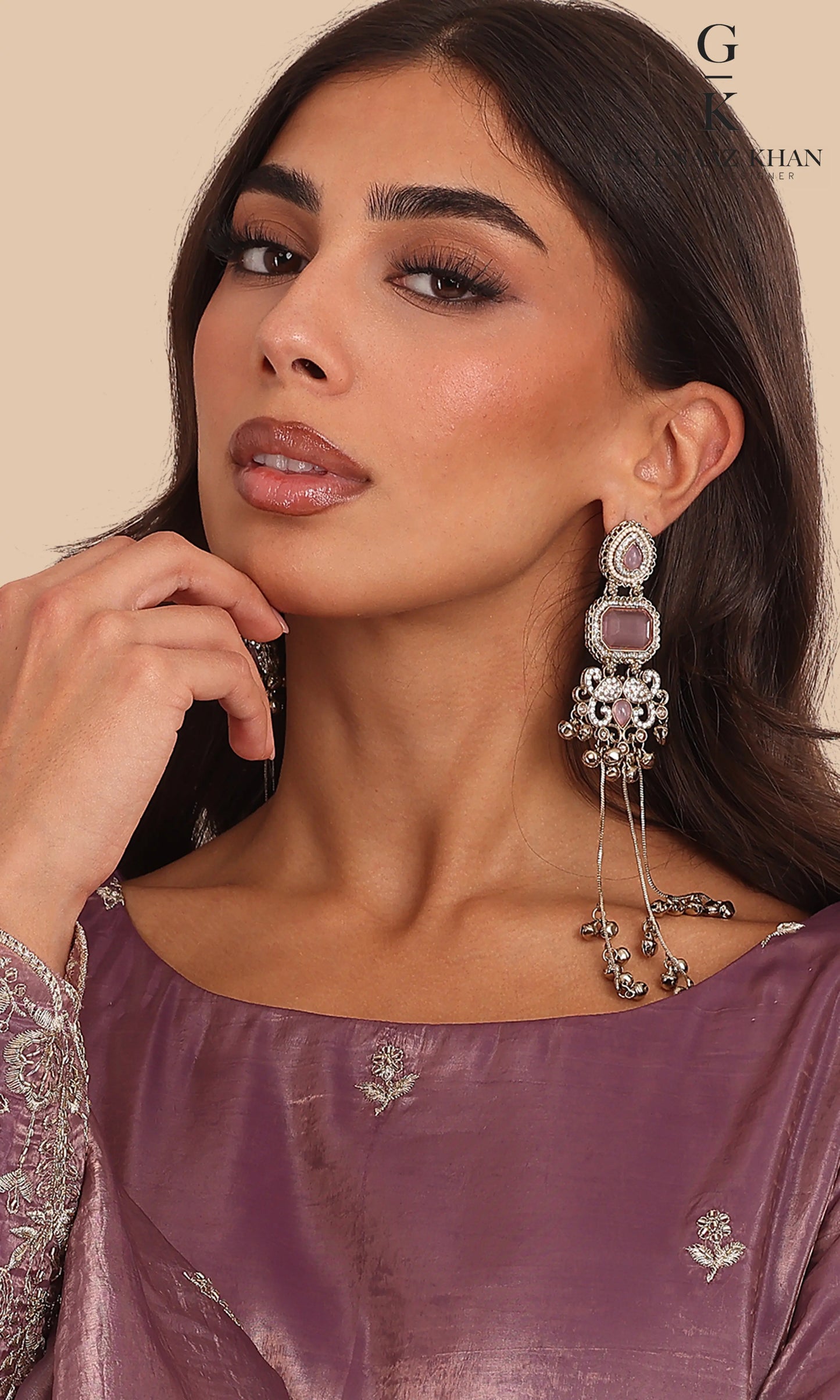 - Work: Fine thread embroidery with delicate zari & subtle stone detailing