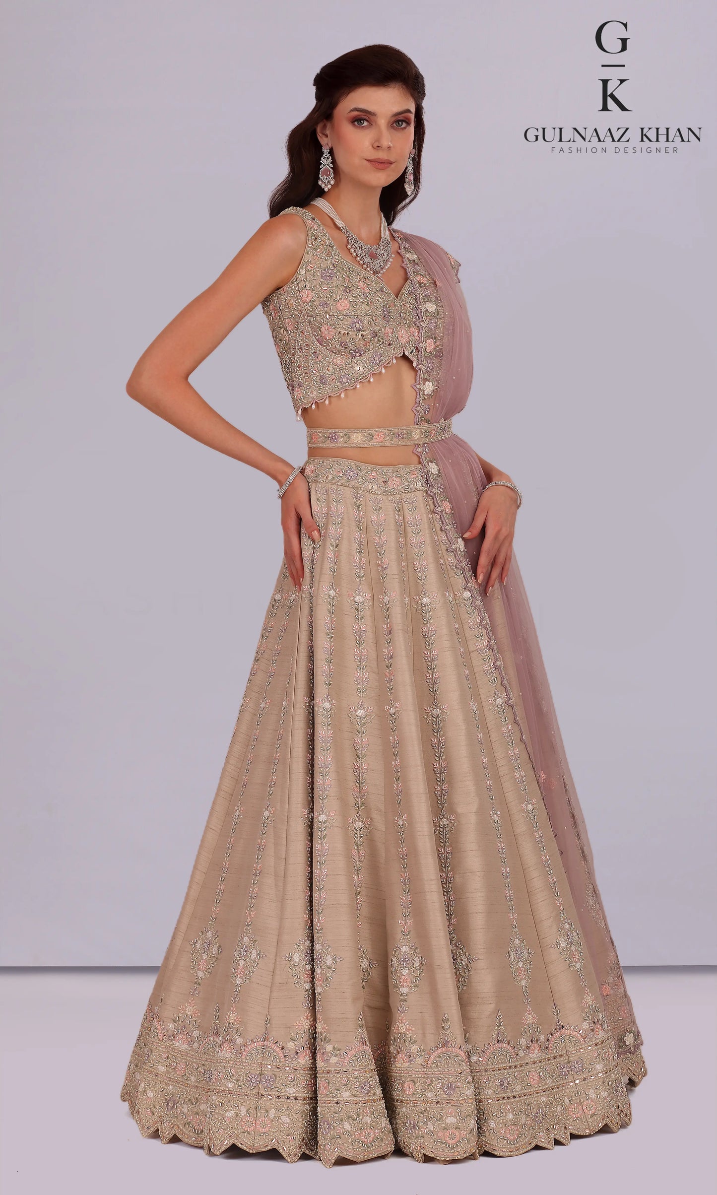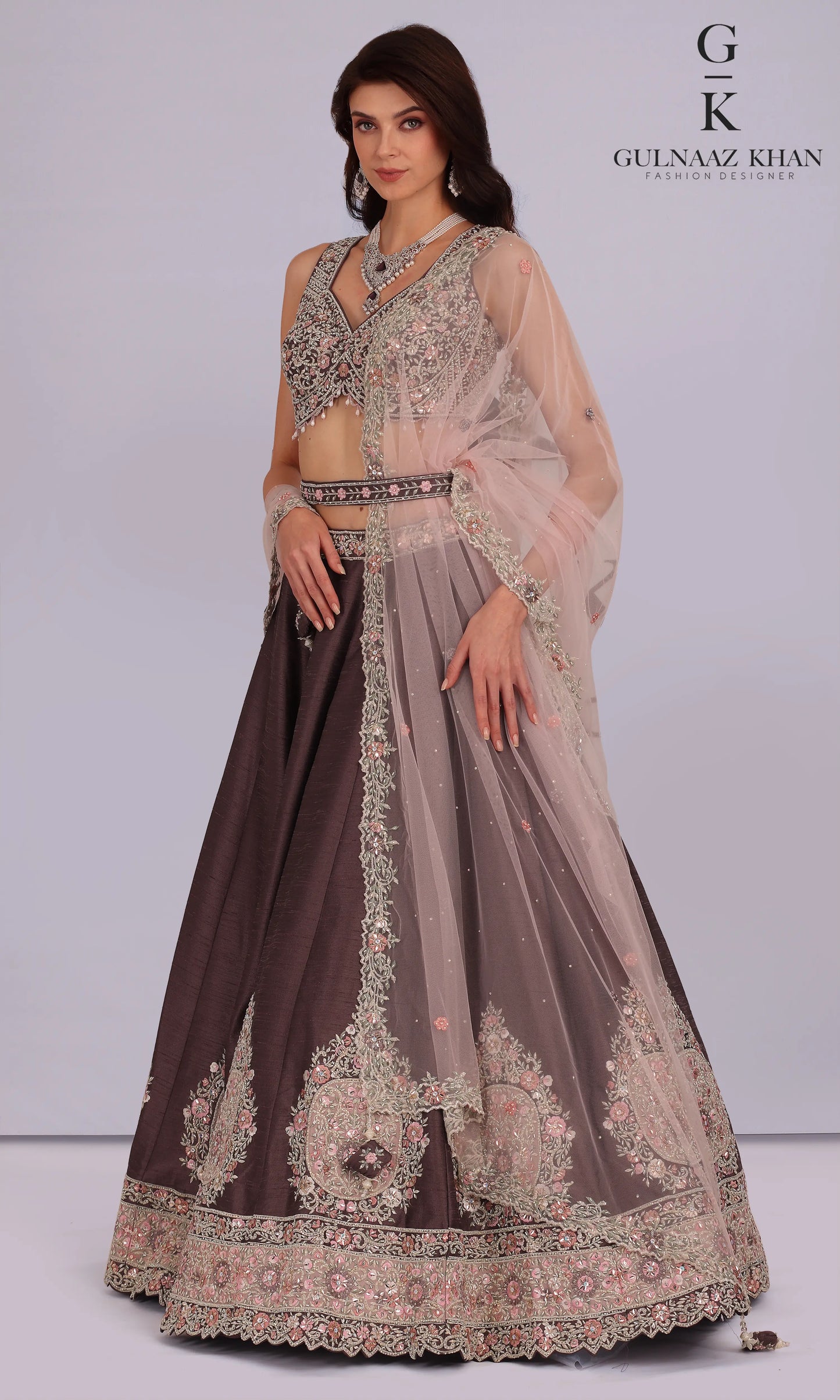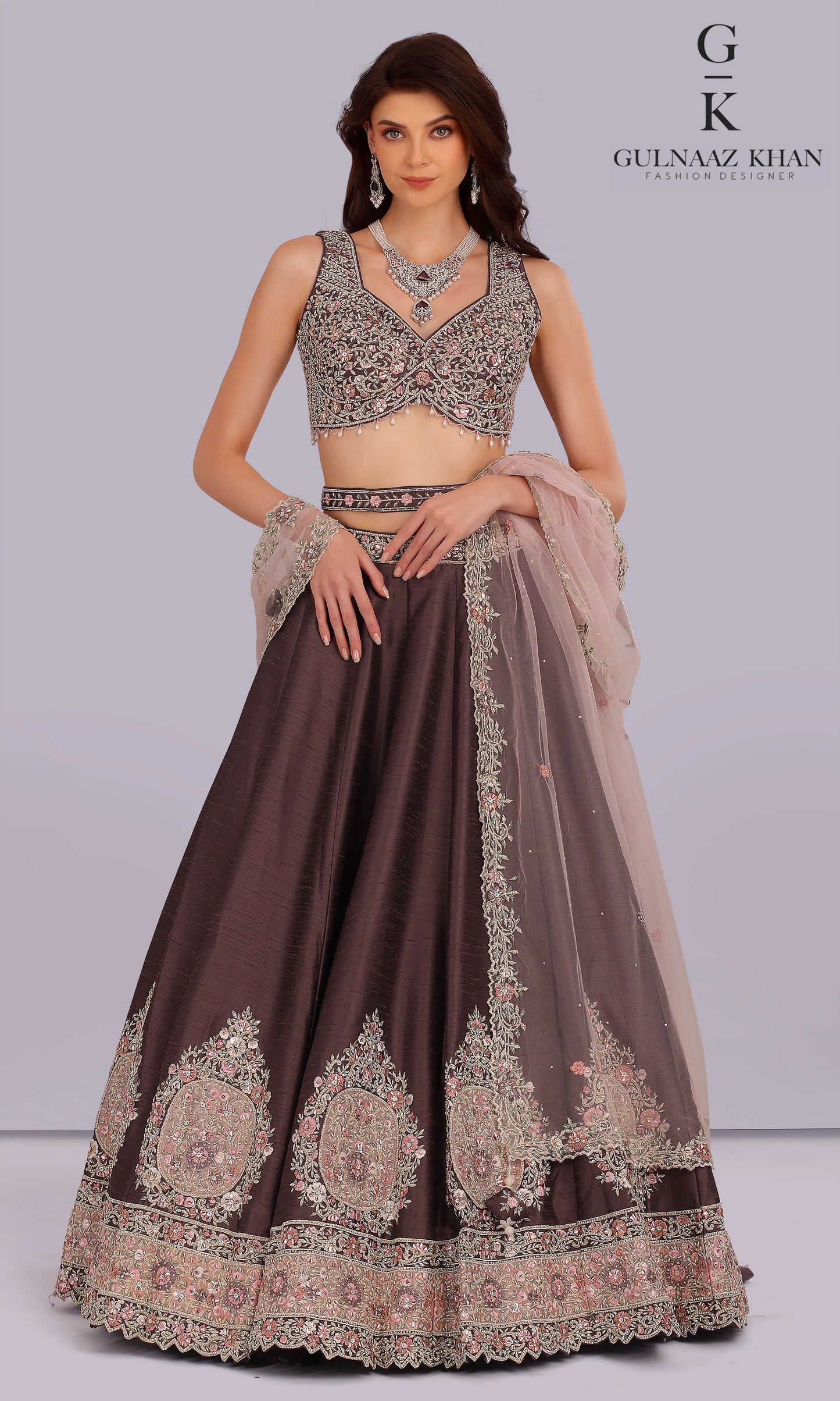 Iffah – Mocha Raw Silk Lehenga with Zardozi & Resham Handwork