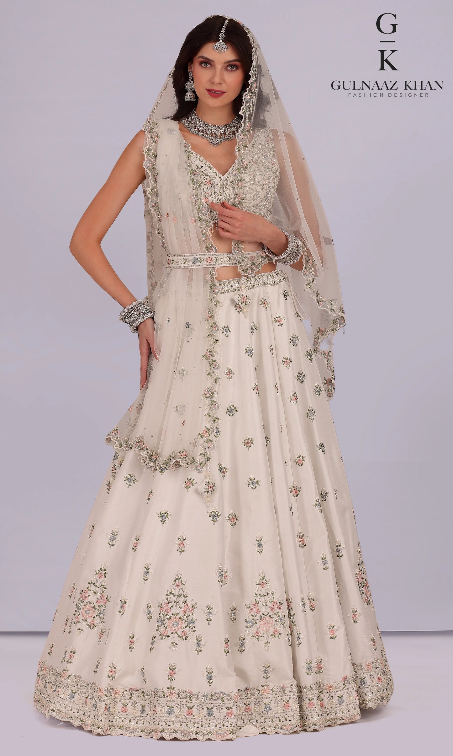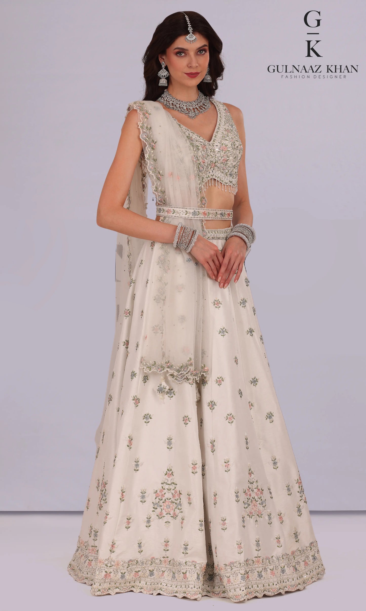 Anjum – Ivory Net Jacket Style Lehenga | Raw Silk + Sequins Pearl Stone Embroidery