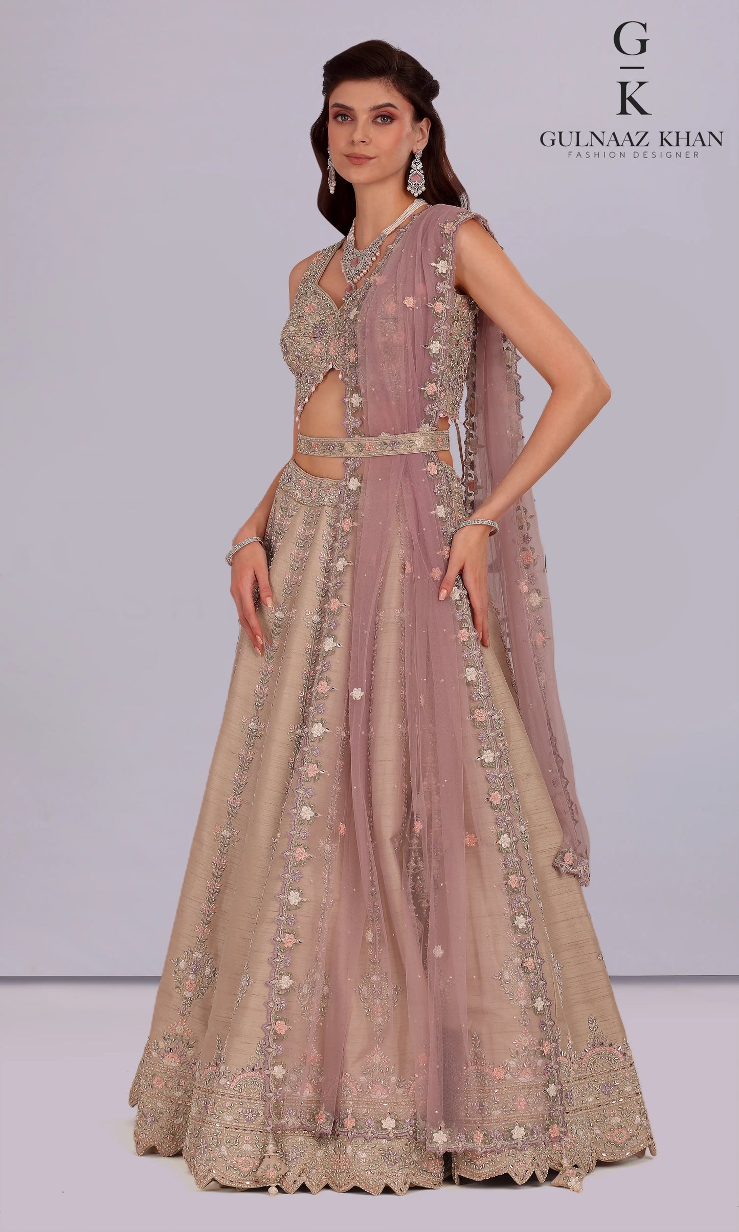 Lamis – Luxury Net & Raw Silk Lehenga with Sequins, Stones & Cutdana Work