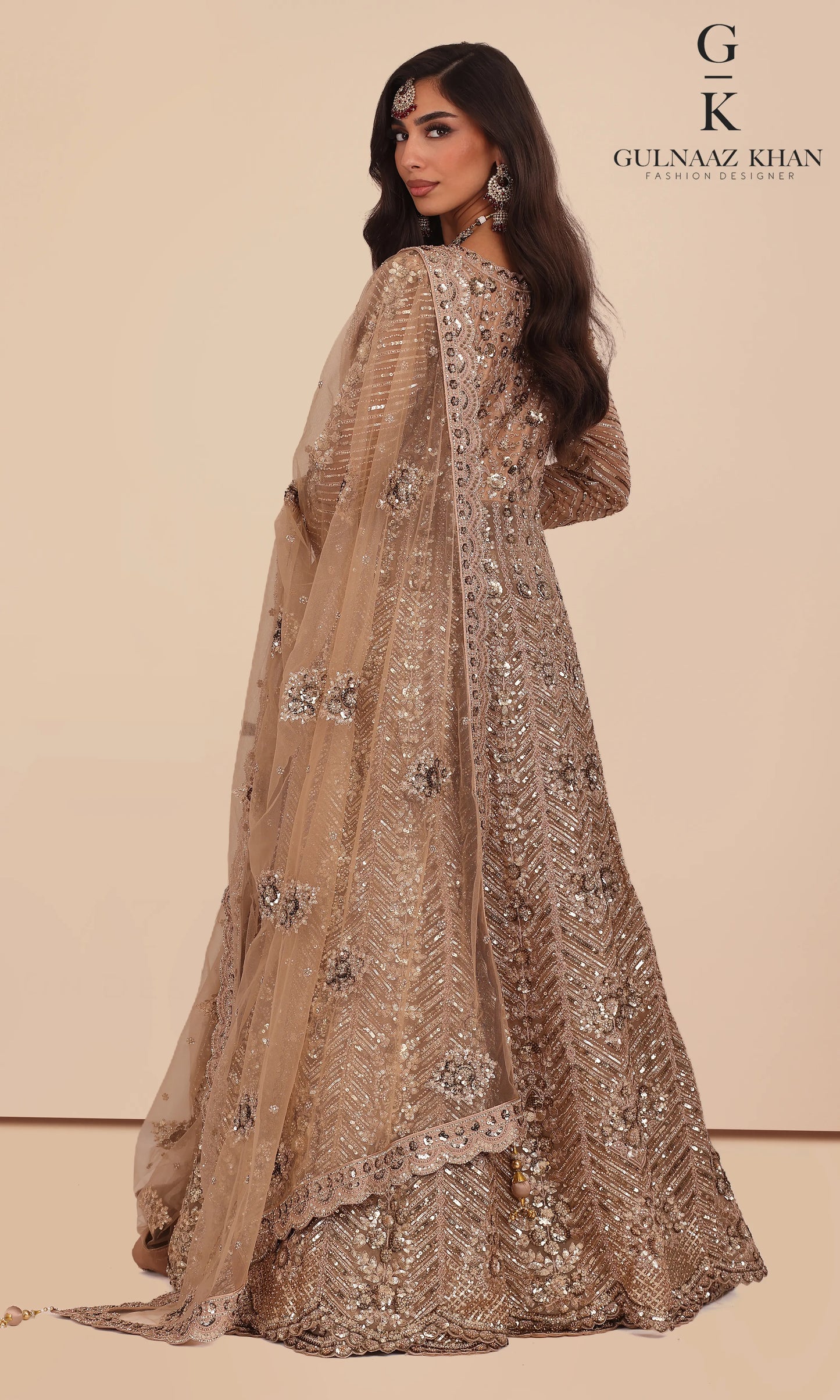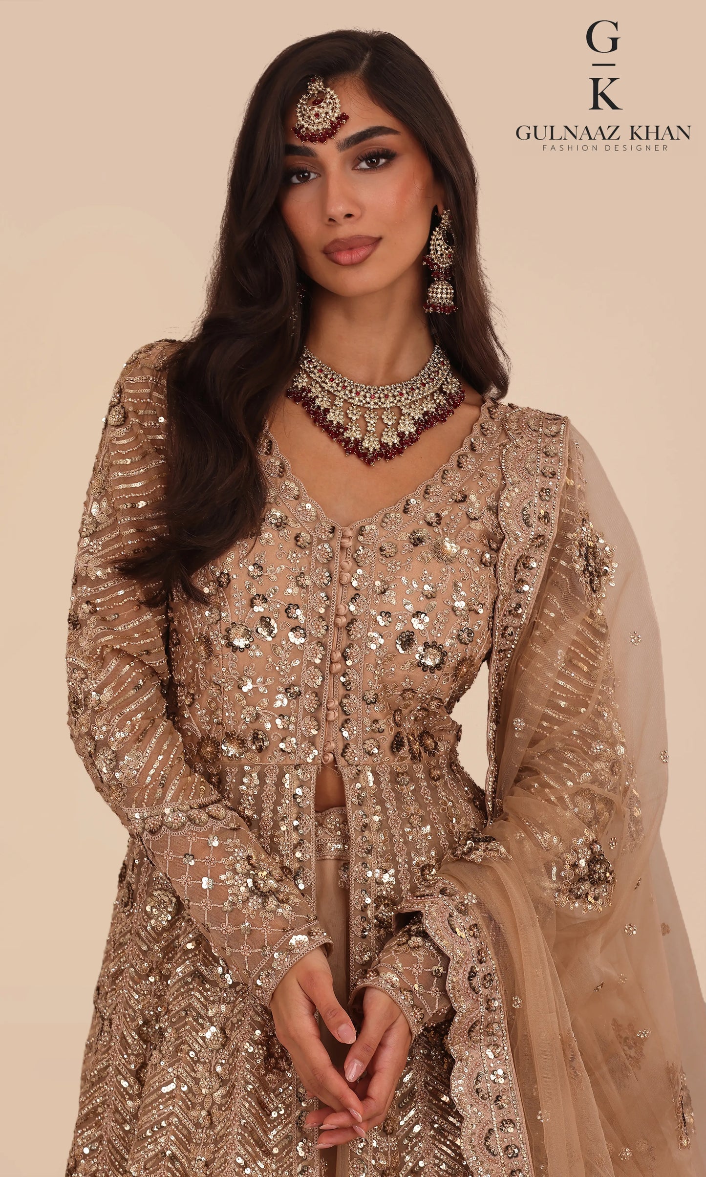 Gulchehra Bridal Gown – Jacket Style Net & Rawsilk (Sequins, Dori, Pearls & Stone Work)