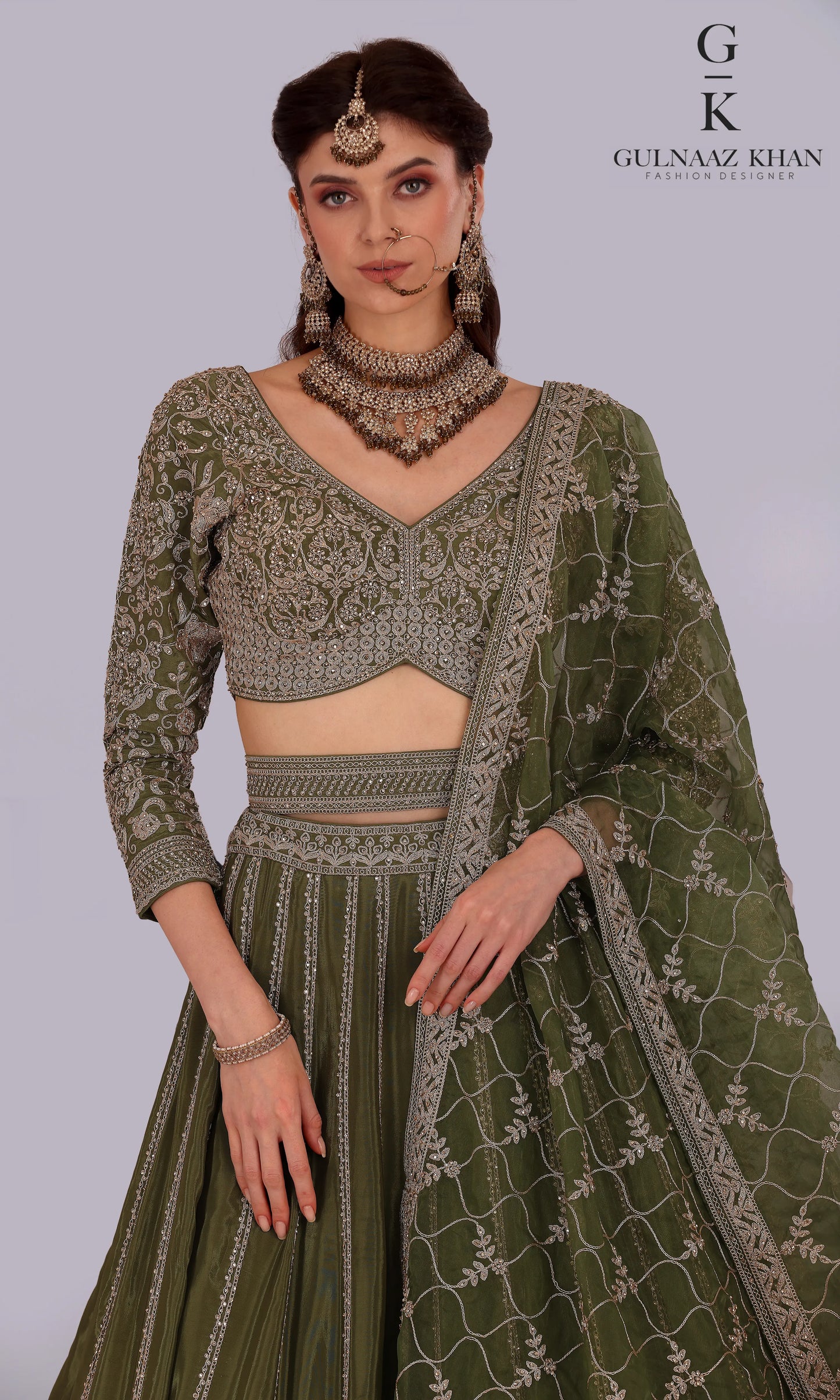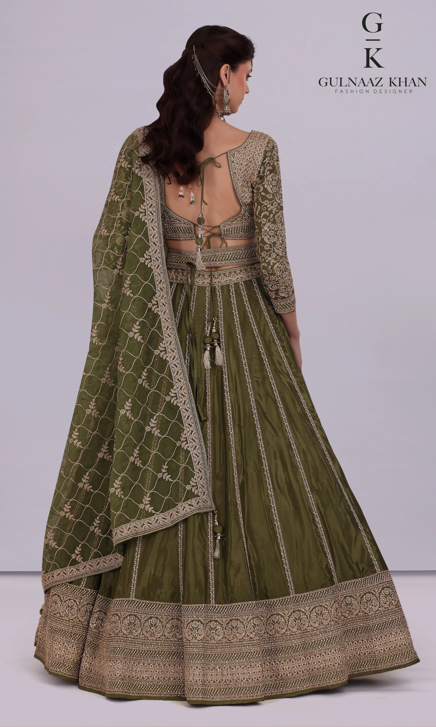 Saira – Designer Olive Green Crepe Lehenga for Haldi & Mehendi