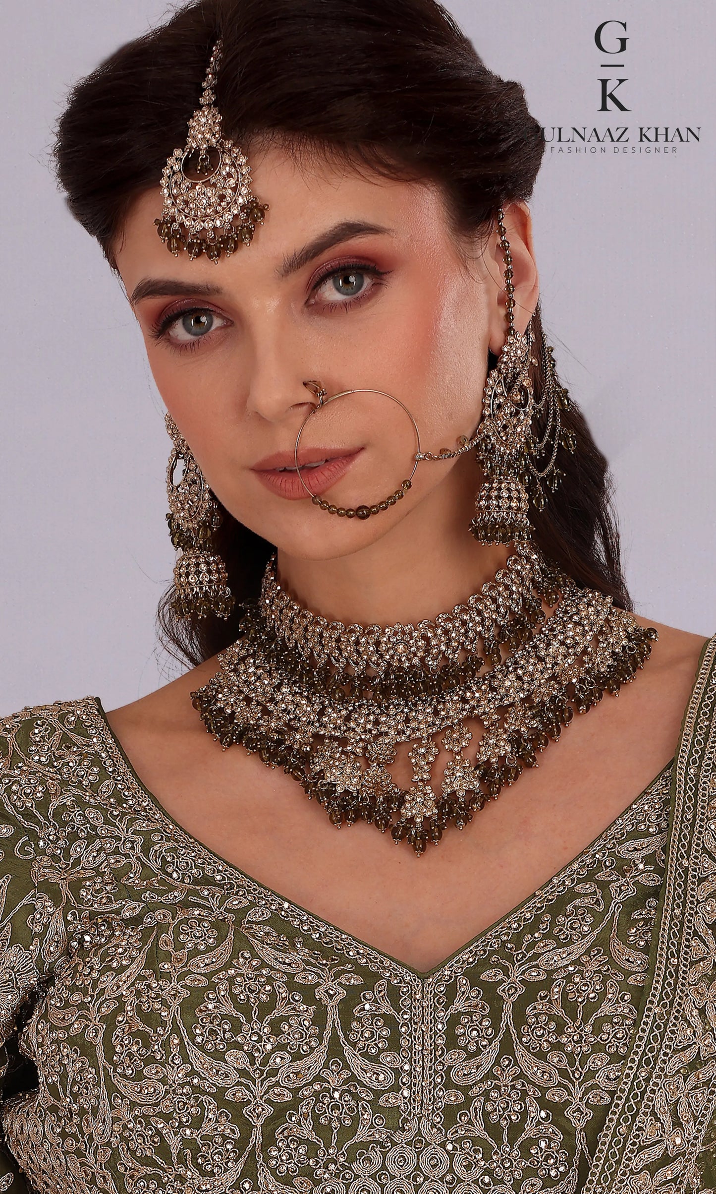 Saira is a designer olive green lehenga crafted in pure crepe, thoughtfully designed for Haldi and Mehendi ceremonies. The outfit features refined dori and stone embroidery across the blouse, lehenga, and dupatta, creating a graceful and elevated pre-wedding look. Lightweight yet luxurious, Saira is ideal for brides who want comfort without compromising on elegance.