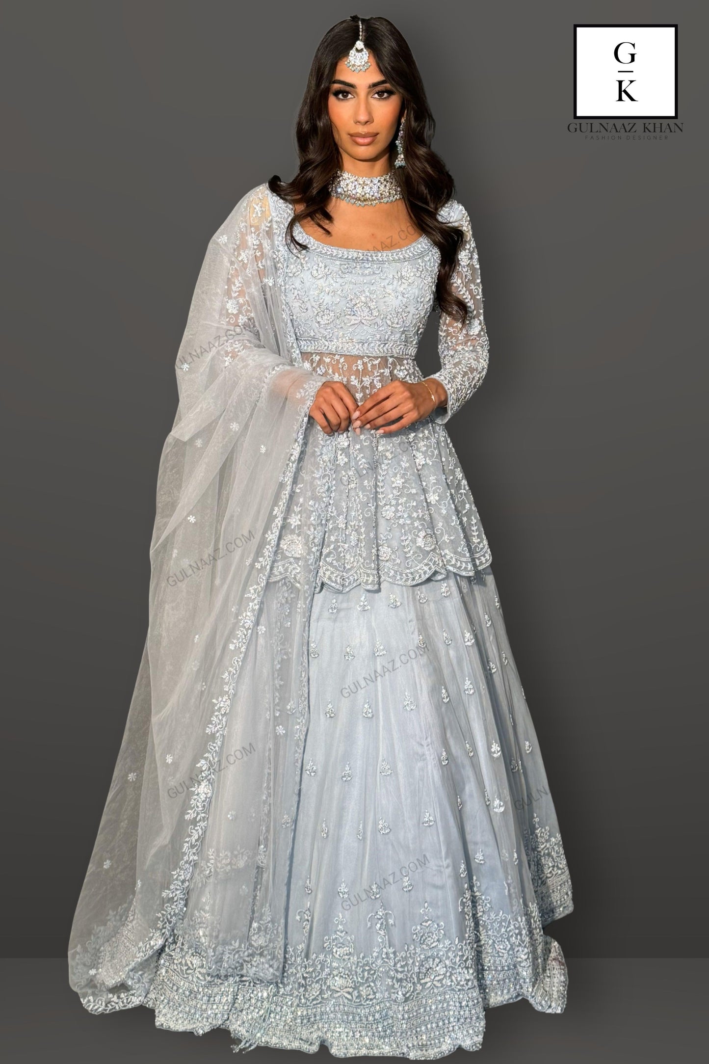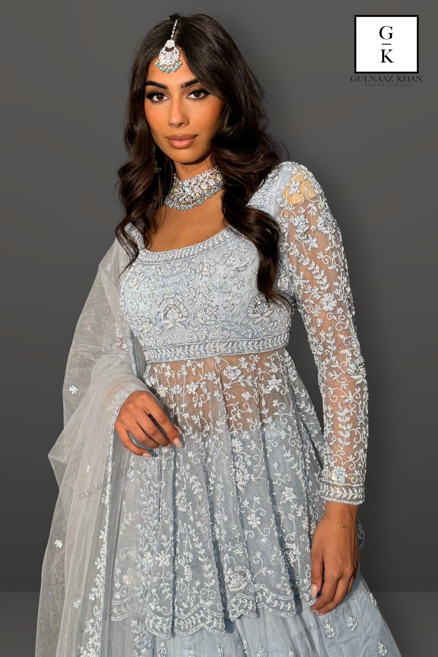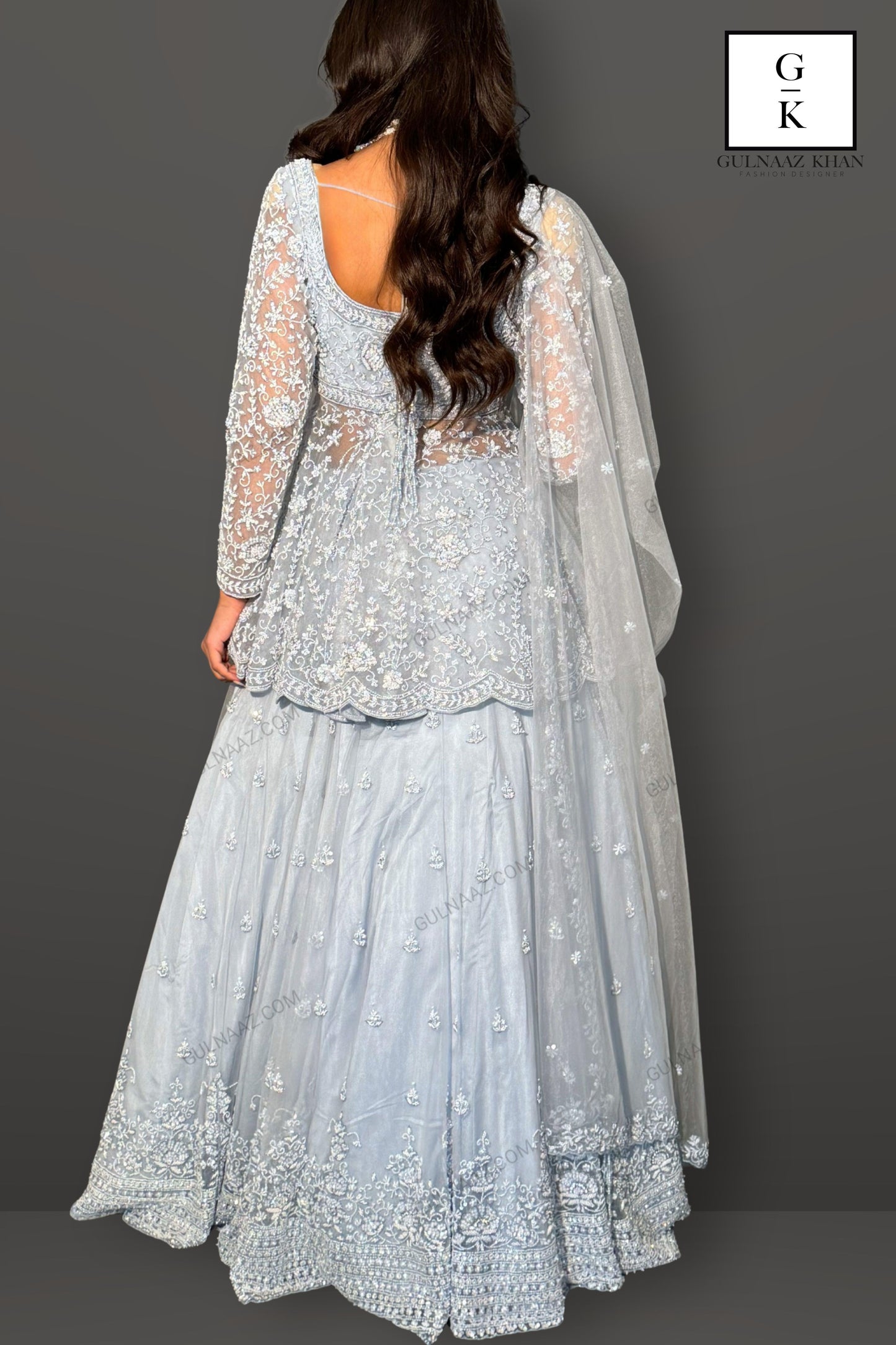 This stunning sky blue sharara set features exquisite craftsmanship and intricate detailing. The set includes a beautifully embellished top with delicate embroidery and beadwork, creating a sophisticated and elegant look. The sharara are adorned with similar intricate embroidery, adding a touch of glamour to the outfit. The set is completed with a sheer dupatta that features a matching embroidered border, enhancing the overall elegance. Perfect for weddings, festive occasions, or any special event, this sharara set exudes grace and charm.
